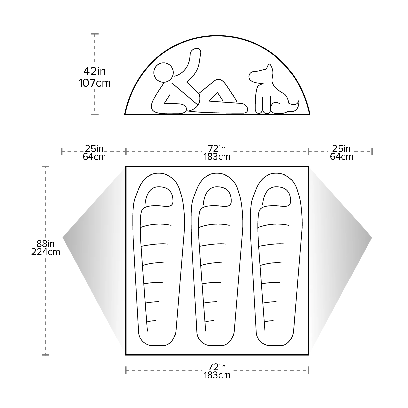 - Freestanding architecture is easy to set up and provides ample interior space, with extra storage in each vestibule.