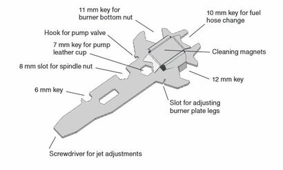 - 11 mm key for the burner bottom nut