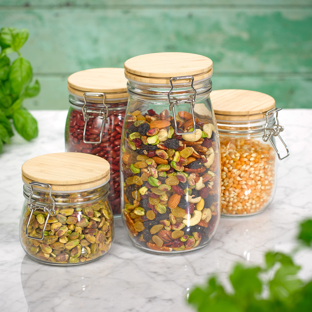 Glass Jar with Bamboo Clip Top Lid, 0,98l