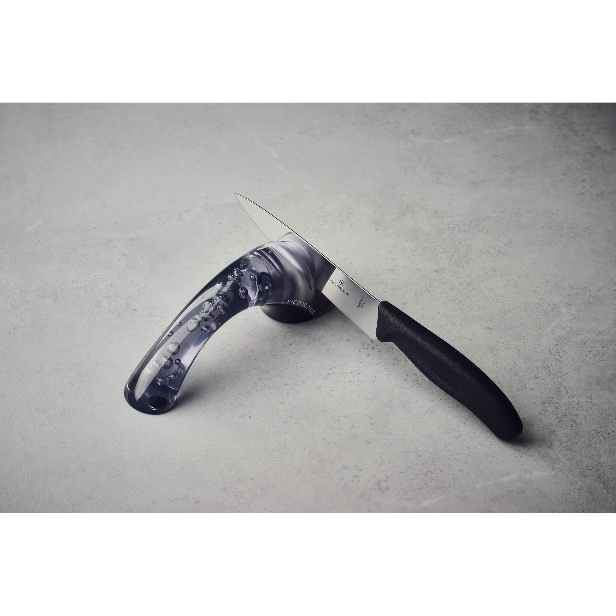 Knife Sharpener with ceramic rolls, transparent grey